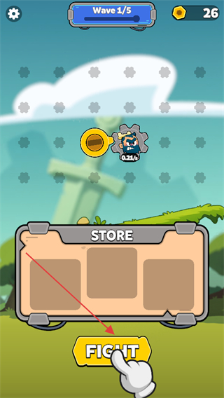 2、点击“FIGHT”按钮开启战斗,在每一波战斗中,指挥齿轮角色与敌人交战,积累资源和战斗经验。