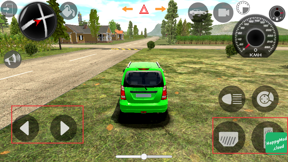 4、驾驶时,通过左侧方向按钮控制车辆转向,右侧油门和刹车按钮控制车速,同时关注车速表等车辆信息。