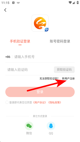 3、在登录注册页面,点击新用户注册选项,进入注册信息填写界面。