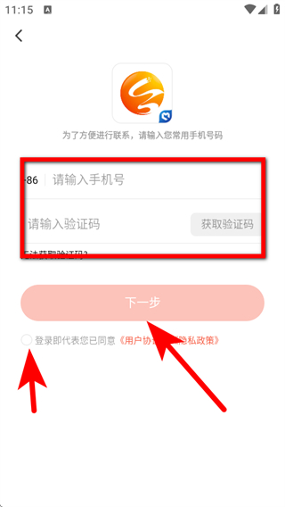 4、输入手机号和验证码并勾选同意协议,点击下一步,即可完成账号注册操作。