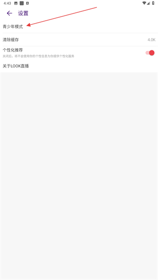 3、进入设置的页面内,点击青少年模式的按钮即可。