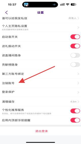 3、在设置页面中,向下滑动找到并点击注销账号选项。