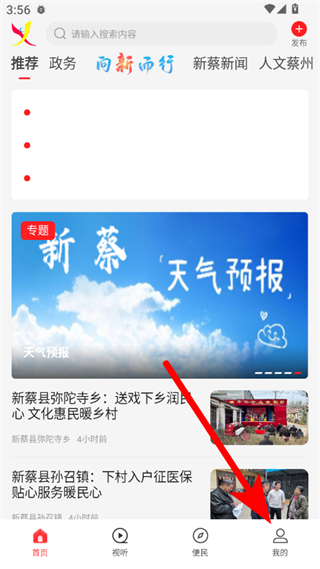 1、在云上新蔡首页,点击右下角我的选项,进入个人界面。