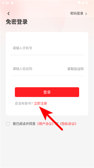 3、在登录页面,点击立即注册选项,进入注册界面。