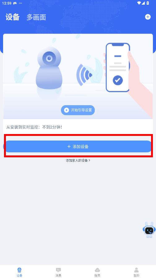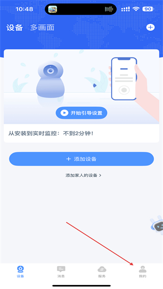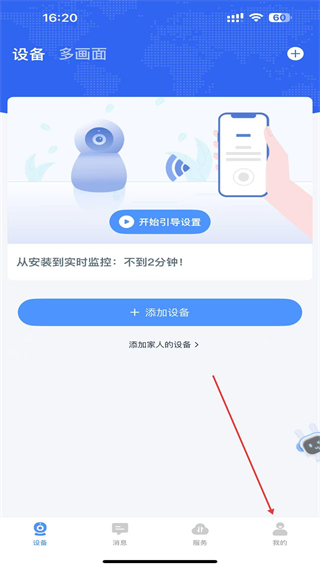 1、打开eseecloud APP,进入设备多画面界面,点击+添加设备按钮。