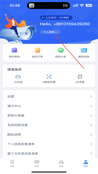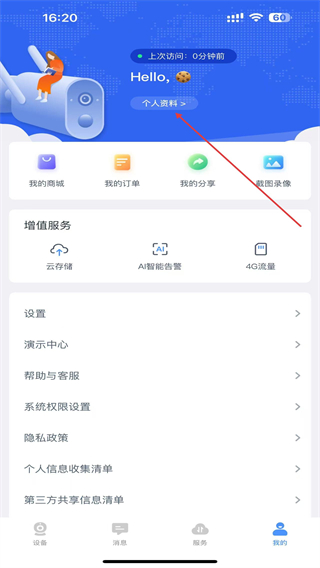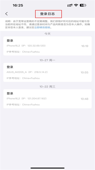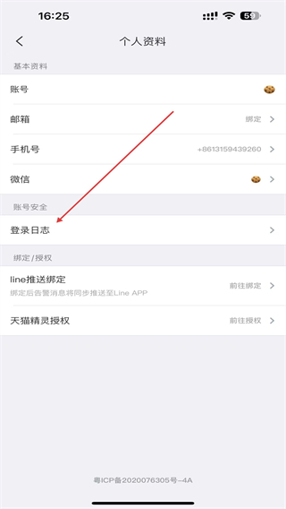 3、进入个人资料的页面内,点击登录日志的按钮。