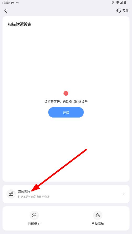 2、在扫描附近设备界面,点击下方的添加套装选项。