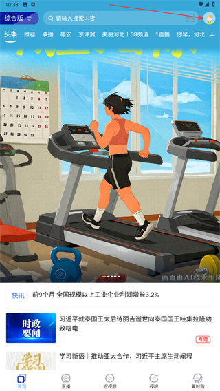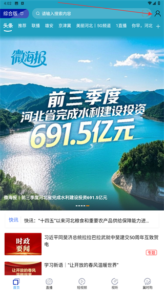 1、启动河北广播电视台的应用,进入首页点击右上角人像图标。
