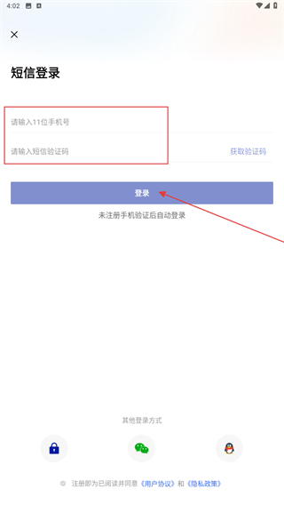 3、输入手机号、验证码后,点击登录按钮即可完成登录。