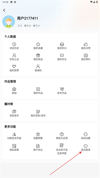 2、进入个人中心的界面内,在更多功能下点击退出登录的按钮。