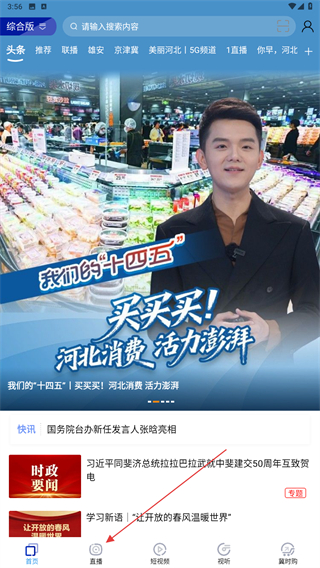 资讯模块不仅包括图文、视频、图集等多种形式的新闻资讯,还包括冀时号、直播等模块推荐过来的优质资源