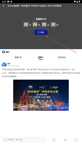 4、进入直播的页面内,点击画面中预约的按钮即可完成。
