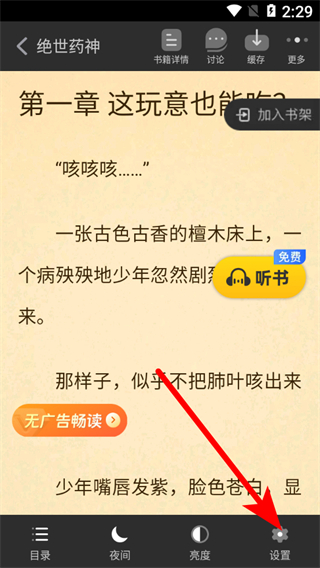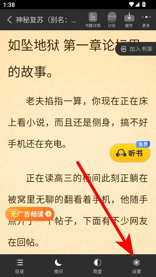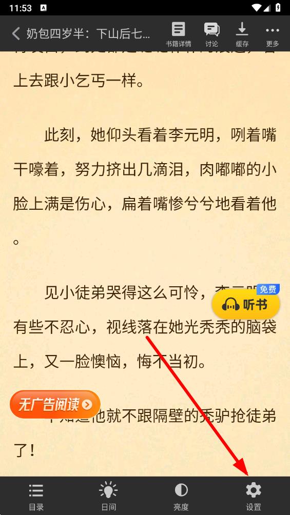 2、在阅读界面中,点击屏幕下方的设置图标,进入阅读设置页面。
