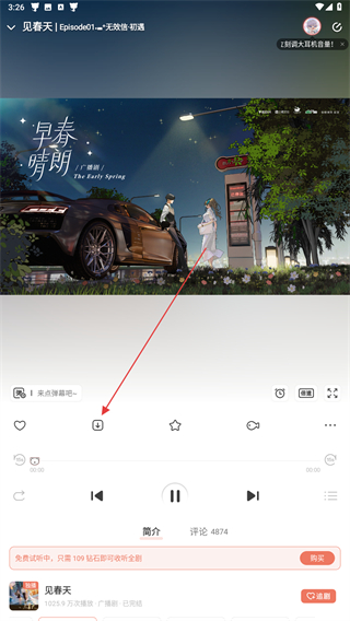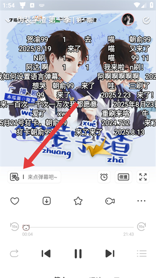 2、在广播剧的播放界面,需要点击弹幕开关的图标,弹出弹幕设置的面板。
