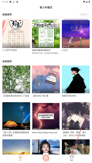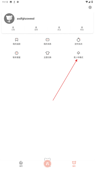 1、启动猫耳fm的应用软件,进入青少年模式页面点击右下的图标。