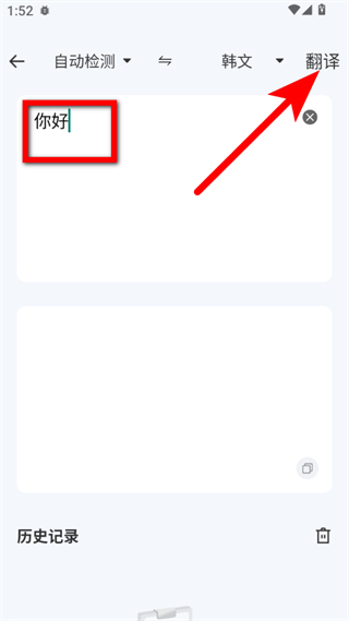 4、在输入框中输入需要翻译的文本,如你好,点击翻译按钮。