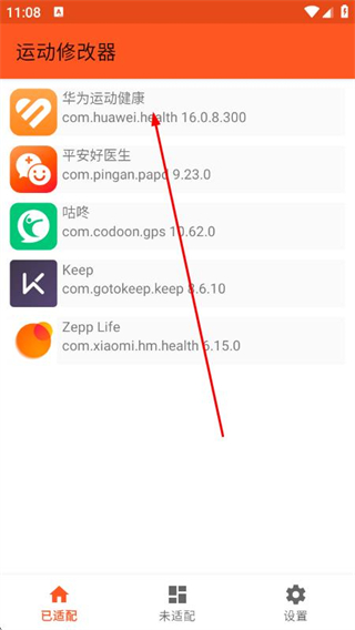 1、打开运动修改器APP,在已适配页面选择要修改的应用。