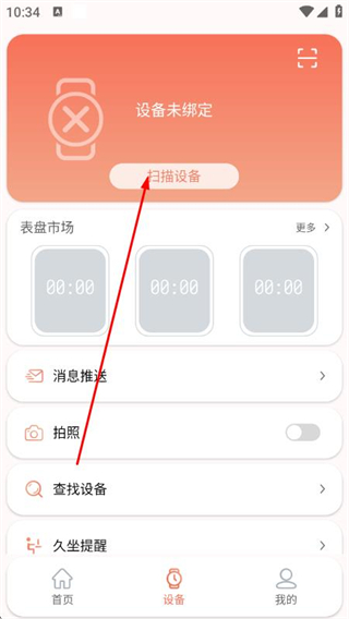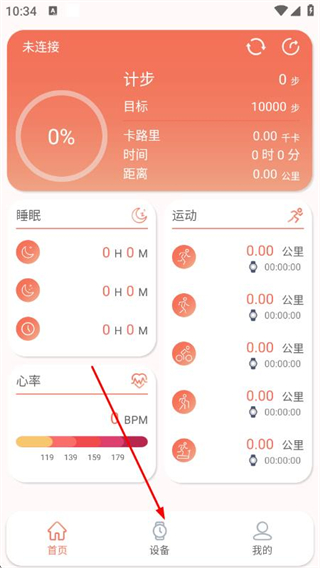 1、打开rdfit APP,点击底部导航栏的设备选项。