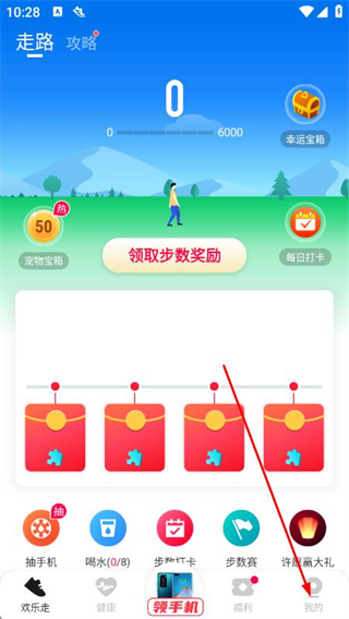 1、打开欢乐走APP,点击底部导航栏的我的选项。