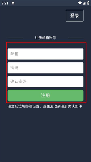 3、输入邮箱、密码并确认密码,点击注册。