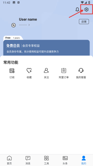 2、在个人中心,点击右上角设置图标,进入设置界面。