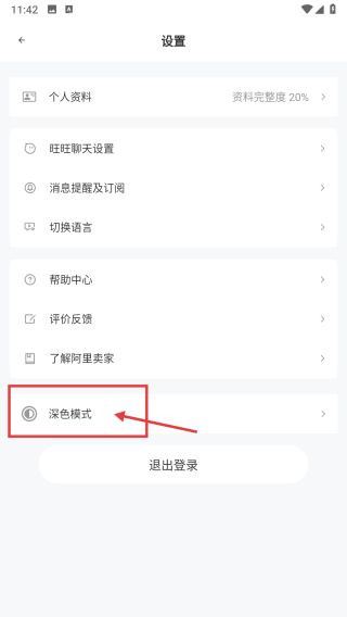 3、在设置界面,点击深色模式选项,进入模式选择页面。