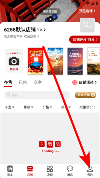 1、打开车商记,点击底部导航栏我的,进入我的页面。