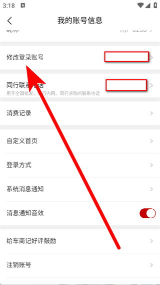 3、在设置页面,点击修改登录账号,进入修改登录账号页面。