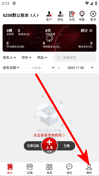 1、打开车商记,点击底部导航栏我的。