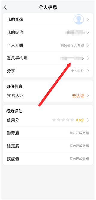 3、在个人信息页面中,需要点击登录手机号的按钮,将会弹出操作选项。