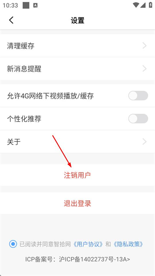 3、在设置页面,点击注销用户选项,可完成用户注销操作。