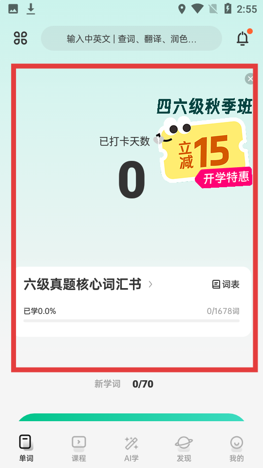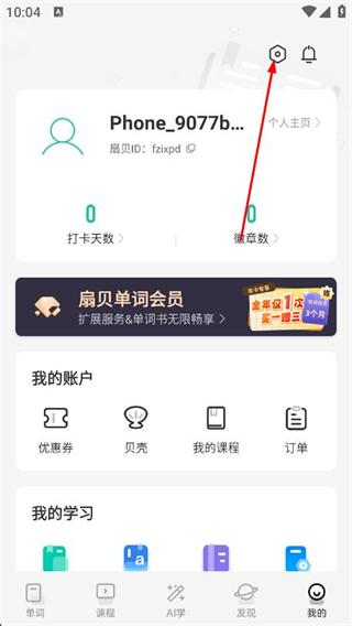 3、登陆完成后,即可成功进入扇贝单词app主界面,代表登陆操作完成。