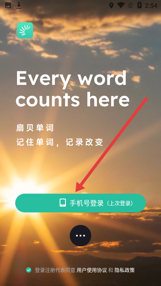 1、打开扇贝单词app,点击界面中的手机号登录按钮,进行手机号登陆。