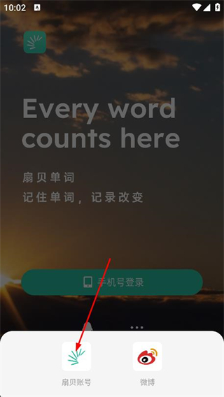 2、在弹出的选项中,选择并点击扇贝账号登录选项。