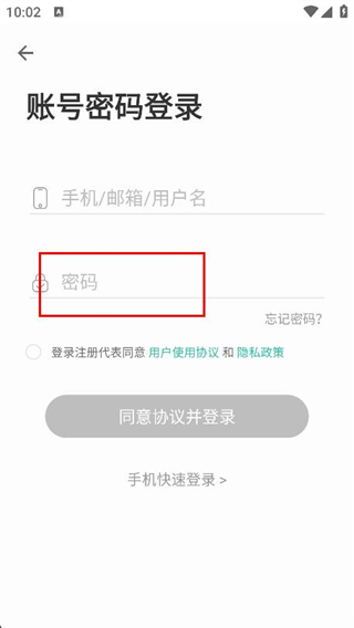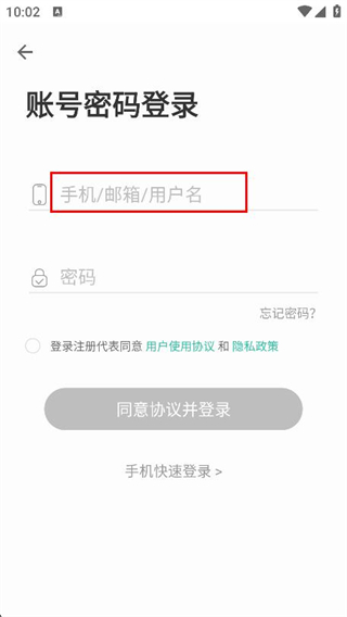 3、在账号密码登录页面,点击输入框,填写登录账号。