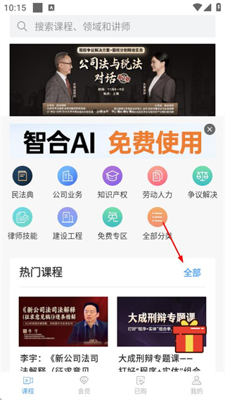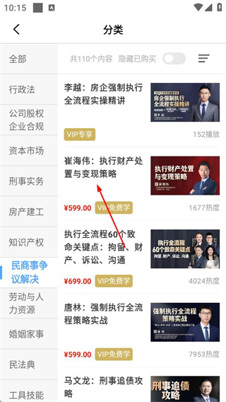 整合海量优质法律课程,涵盖民商事、刑事、行政法等多个法律领域,包含实务案例解析、法规更新解读、职业技能提升等类型,由行业资深专家与一线实务大咖授课。