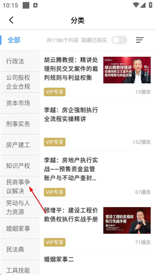 2、在分类页面,选择民商事争议解决分类,进入该分类页面。