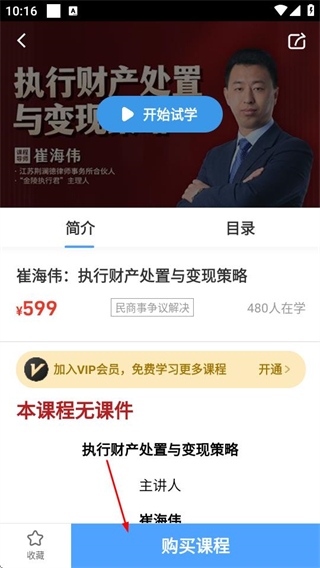4、在课程详情页面,点击购买课程按钮,进入订单支付页面。