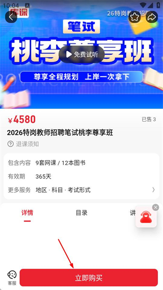 3、在课程详情页面,点击立即购买按钮,进入确认订单页面。