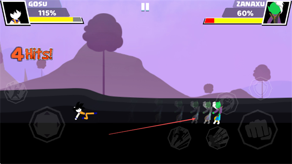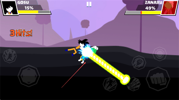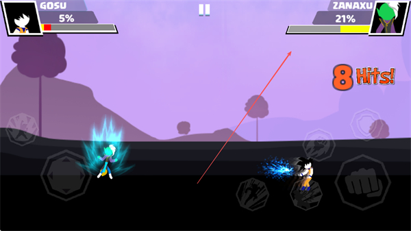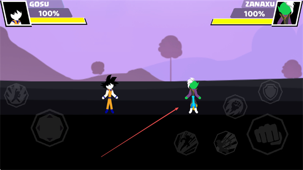 1、操控火柴人悟空,在格斗场景中靠近敌方角色ZANAXU,准备发起攻击。