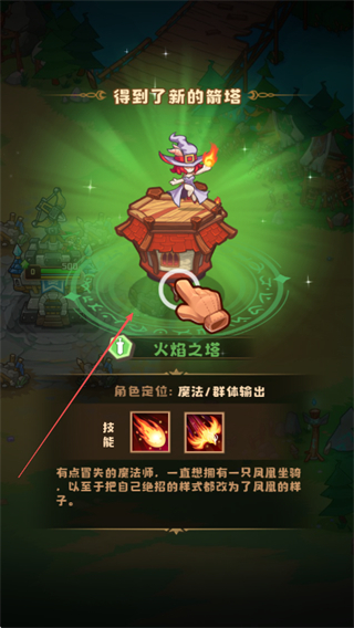 3、解锁新箭塔如火焰之塔,点击塔进行升级,提升群体/群帅输出能力。