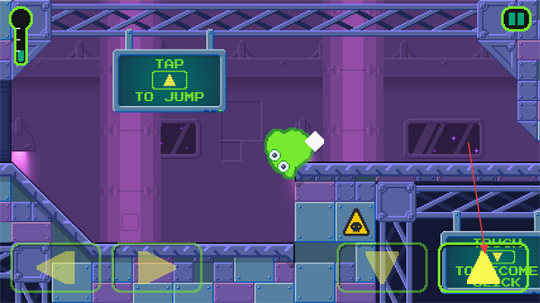 2、通过点击右下角的向上箭头,使粘液跳上台阶等障碍物。