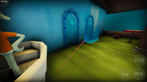 3、注意观察场景中的蓝色高亮区域如门、座位,这些是可交互的关键位置,点击或靠近进行互动。