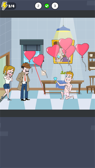 3、利用道具如红色气球布置场景,帮助角色完成求婚等目标,达成关卡要求。