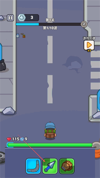 3、切换不同武器如弯刀、匕首,应对不同波次的僵尸,提升防御效果。