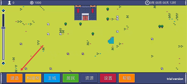 1、进入游戏场景中,根据指引点击底部的建造选项。