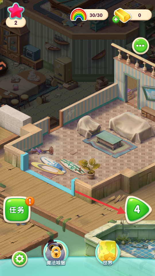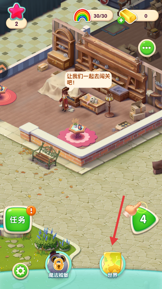 3、选择场景后,点击关卡按钮。