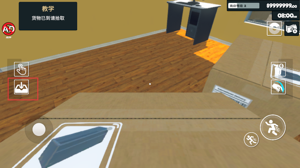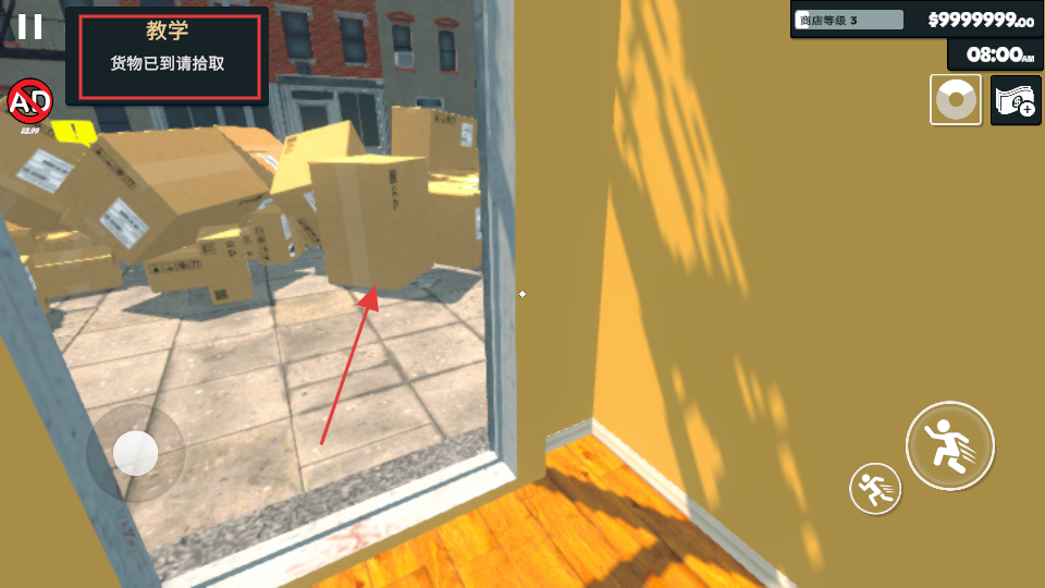 1、根据“货物已到请拾取”的提示,前往货物堆放区域,拾取到货的商品,为商店备货做准备。