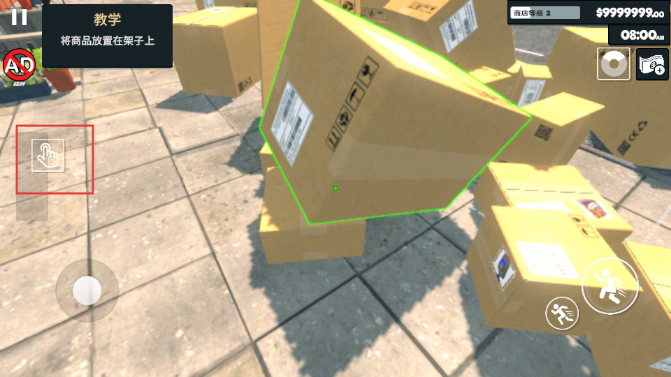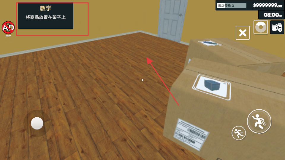 3、通过左下方的方向走到了店铺里,在按打框的标识放下商品。