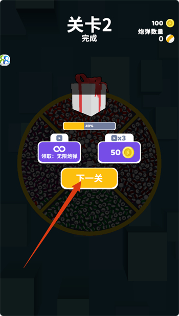 4、关卡2完成后,点击【下一关】按钮,继续挑战后续关卡,同时可根据需求领取奖励,助力游戏通关。